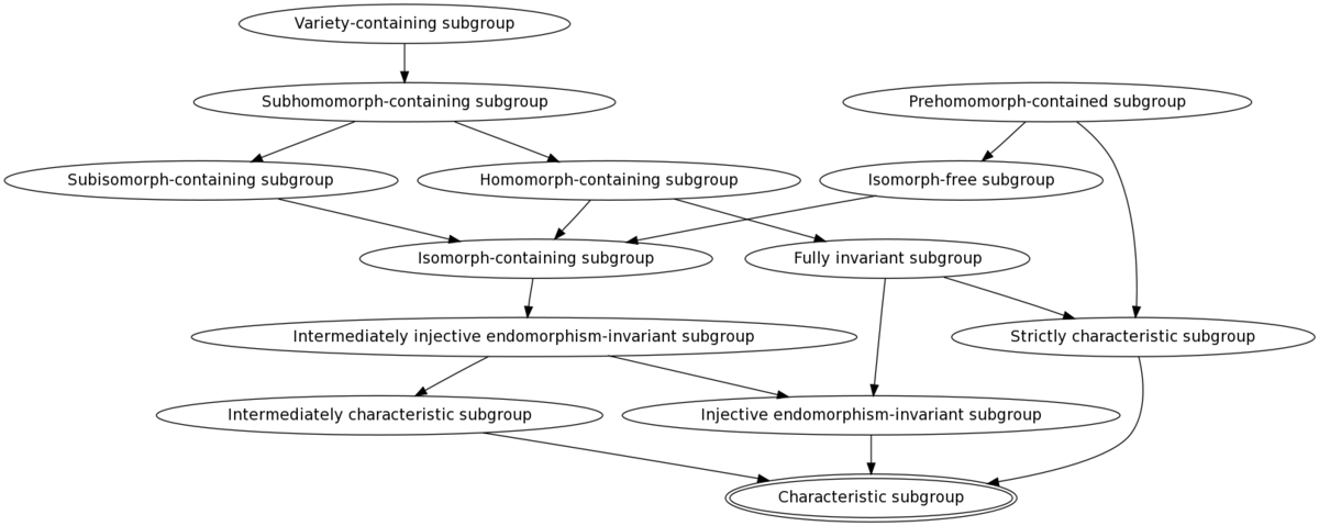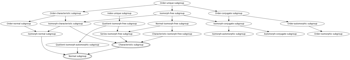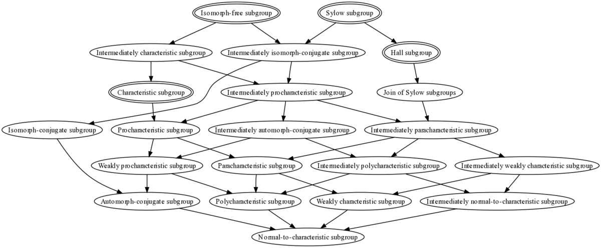 - Characteristic versus normal: Compares the subgroup properties of characteristicity and normality.