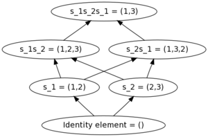 The partially ordered set we obtain via the Bruhat ordering exhibits two important symmetries: a symmetry corresponding to conjugation by the antidiagonal (which essentially means reversing the order) and a symmetry corresponding to a left-right interchange. There is also an anti-symmetry of the lattice obtained by left multiplication by the antidiagonal element .